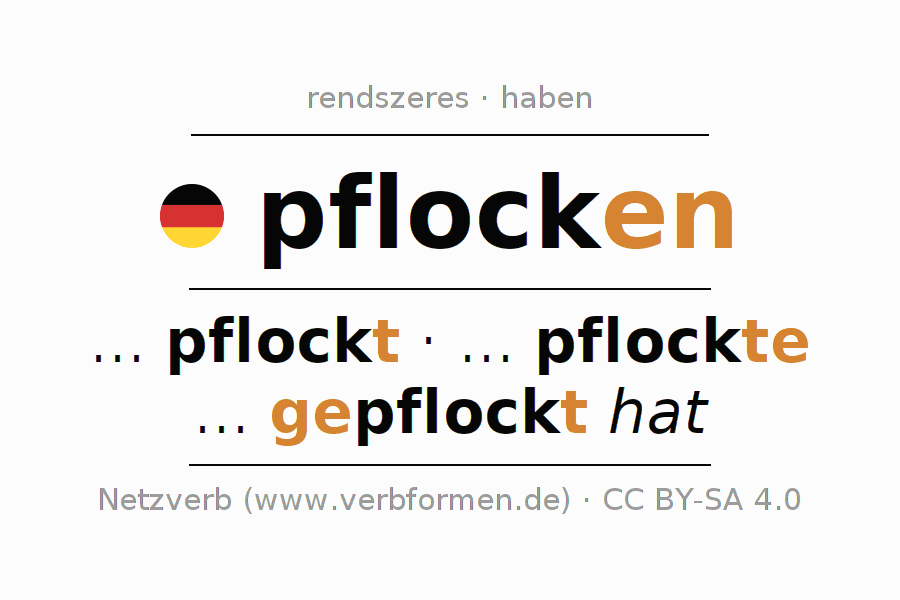 - Befejezett múlt: ... ich gepflockt habe, ... du gepflockt hast, ... er gepflockt hat, ... wir gepflockt haben, ... ihr gepflockt habt, ... sie gepflockt haben
