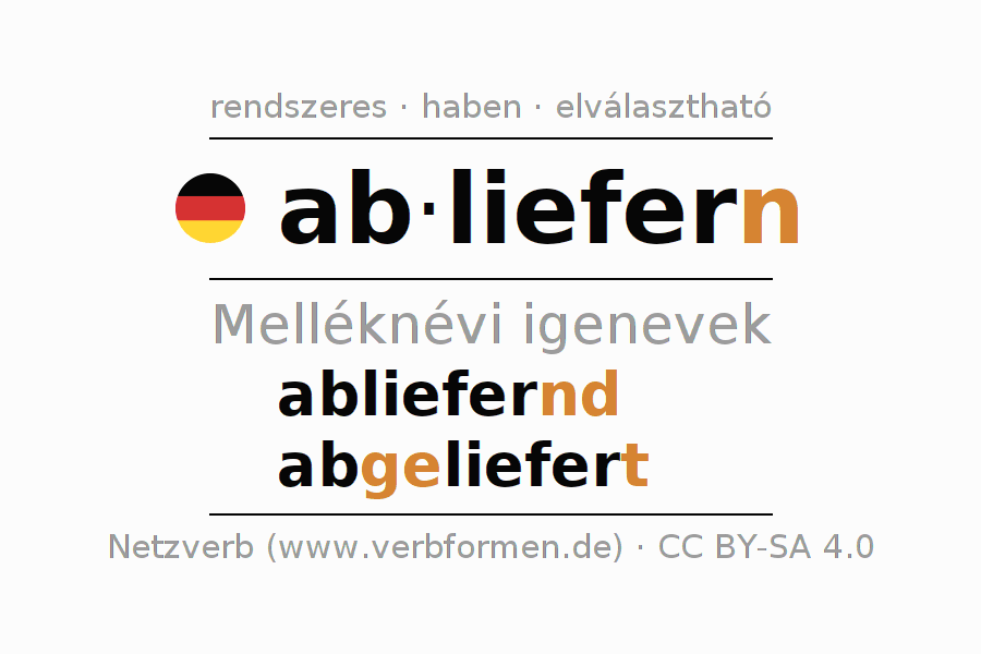 - Hogyan ragozzuk a(z) abliefern igét a(z) Melléknévi igenév-ban/-ben?