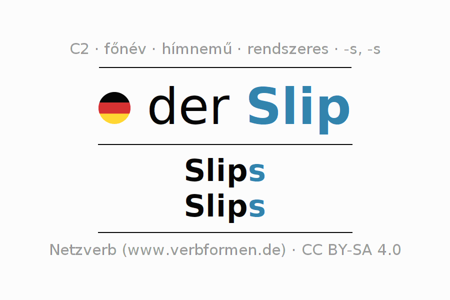 - Egyes szám: der Slip, des Slips, dem Slip, den Slip